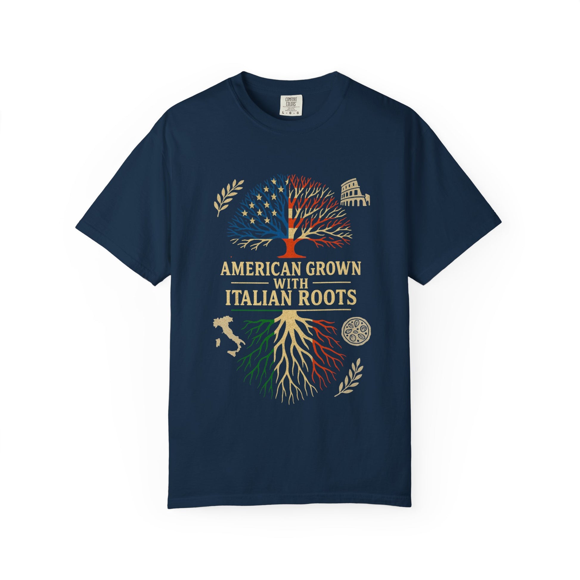 This isnโt just a T-shirt โ itโs a legacy on fabric. Draped in the power of two great nations, this Unisex Garment-Dyed Tee boldly shouts your dual identity: fierce American pride above, and deep Italian heritage below. With an epic fusion of the Stars & Stripes tree crown and tricolor Italian roots, this design honors where you're from and where youโre headed.